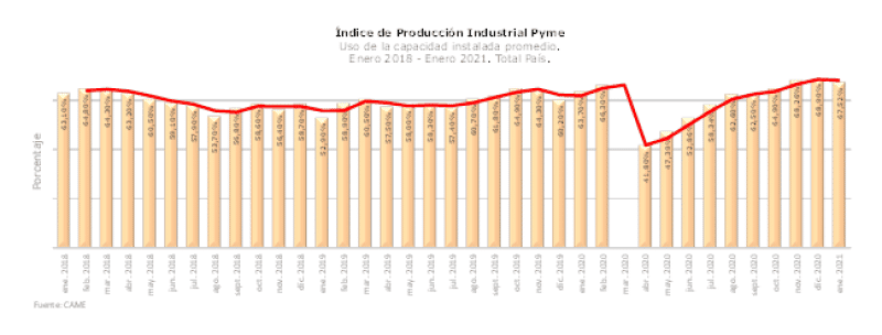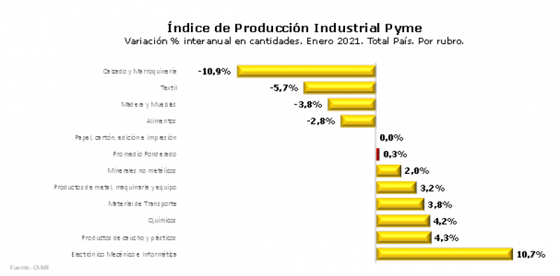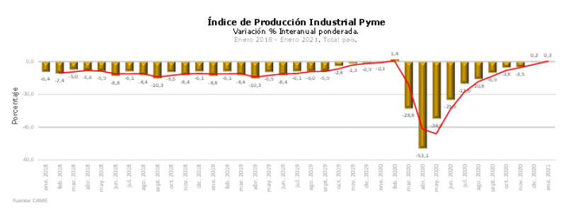 La producción de la industria pyme creció por segundo mes consecutivo al ubicarse 0,3% arriba del mismo mes de 2020.