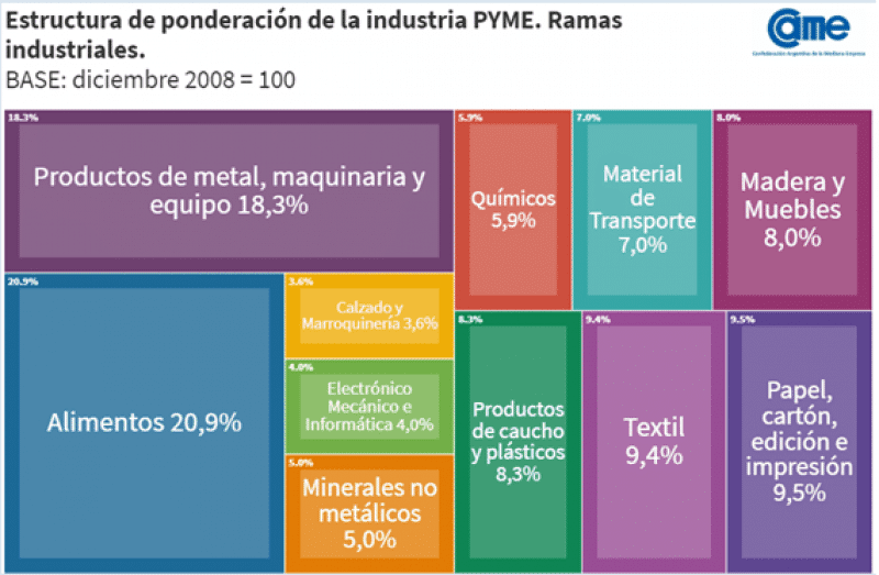 La ponderación de cada una de las ramas industriales se realizó en base al Censo Económico 2004 y al Mapa PYME elaborado por la Sepyme. La consideración asignada a cada sector se puede leer en la siguiente tabla: